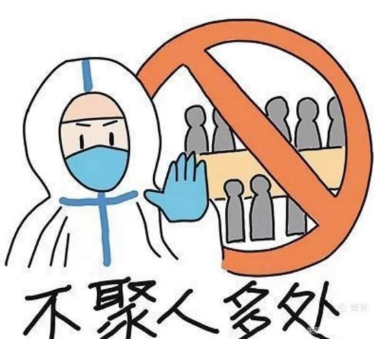 公共场所人员多、流动大,聚餐、聚会易导致呼吸道传染病传播。因此人多场所不要去,拥挤场所要回避。少出门、不扎堆。