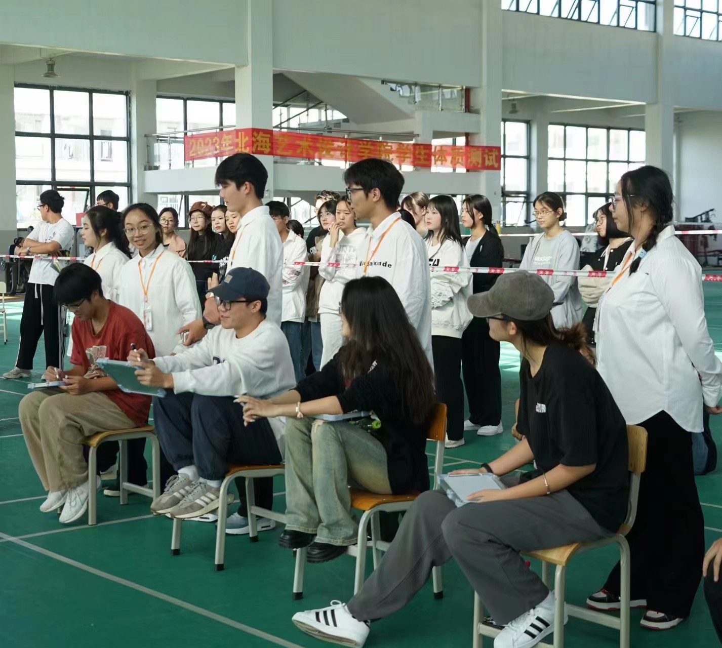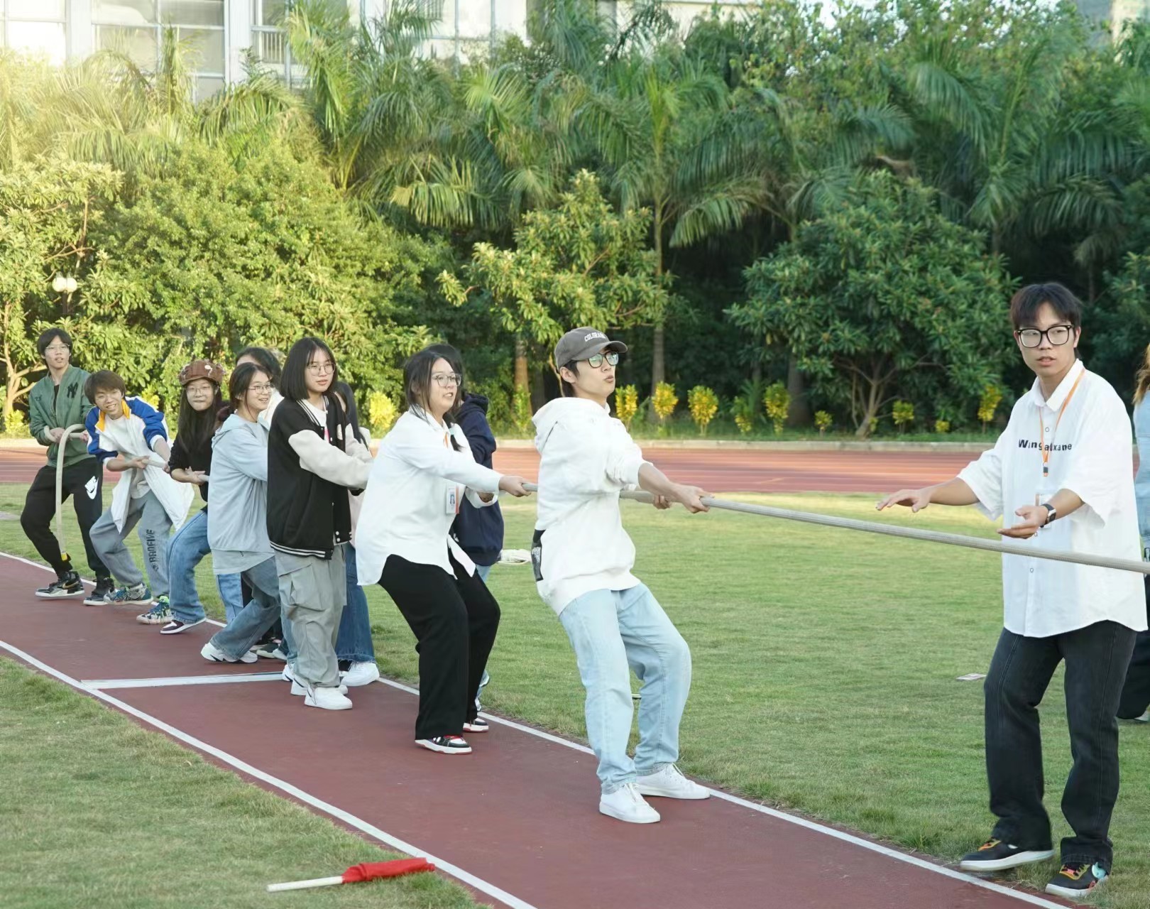 (拔河比赛激烈进行中)