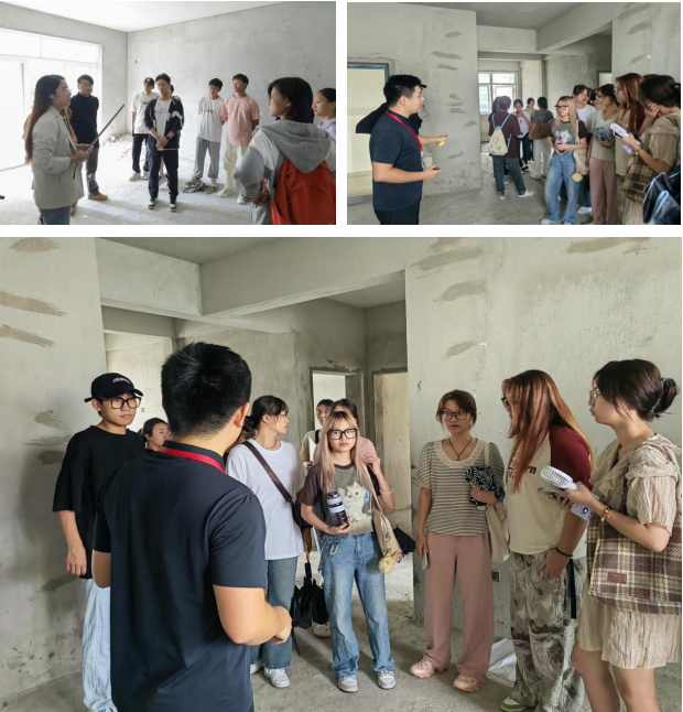 《居室空间设计与表现》是环境设计专业的专业核心课程之一,涉及测量学、人机工程学、装饰材料与构造、光学、环境心理学等相关理论的多学科交叉性专业课课程。为了进一步提升学生的室内设计实践能力,了解真实的工作环境和工作内容。同学们在指导教师的带领下去实践量房。橄榄苑小区根据课程的要求,学院为课程提供两套毛坯房供学生实地测量、设计,体现校企合作协同育人。