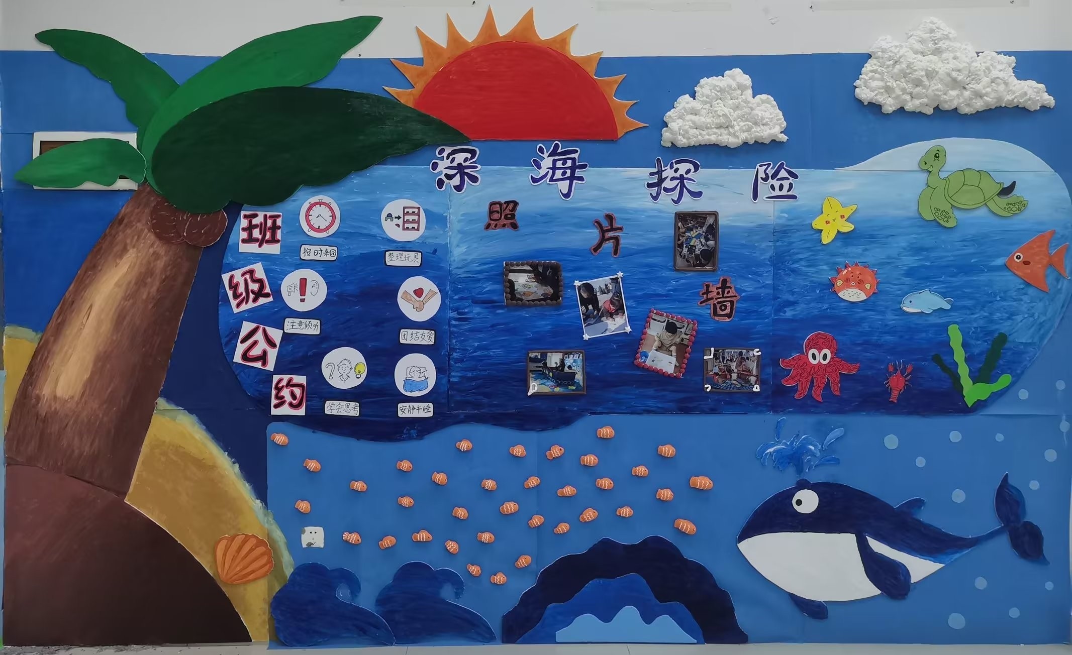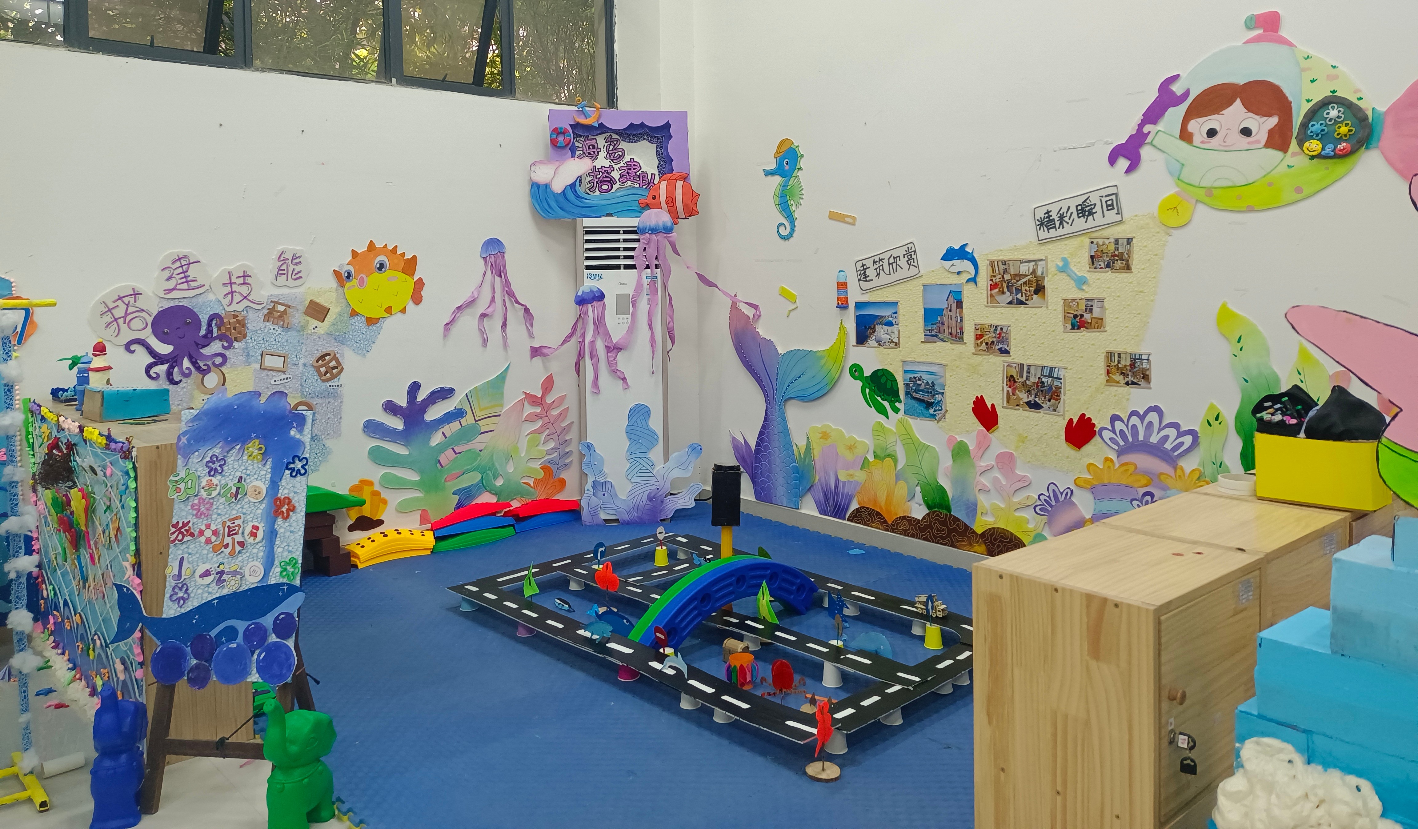 人文教育学院坚持学生发展为中心,以OBE理念为指导,产学研用一体化教学改革,加强校企共建课程,培养学生综合实践能力和创新能力。2023年3月18日,人文教育学院学前教育教研室举办2020级学前教育专业幼儿园教育环境创设课程结课汇报展。本次结课汇报展的作品以海洋文化为主题开展区域环境创设。环境创设是幼儿园课程实施的重要内容,也是幼儿园工作的基本要务,以美术为手段展示的学生环创作品,从多方面体现学生的综合素质。