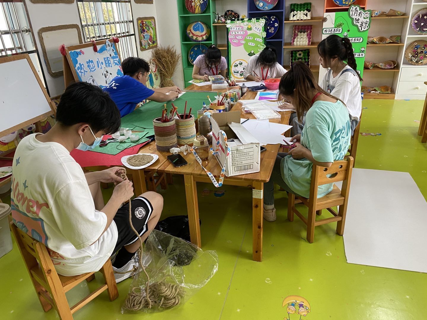 环境创设更是让见习生们眼前一亮,原来每个环境创设的后面,呈现的都是每一位幼儿园教师的幼儿教育理念。在本次见习活动中,见习生们一共做了:海丝路、儿童节、端午节为主题的环境创设板块,得到了幼儿园老师们的肯定及夸赞。