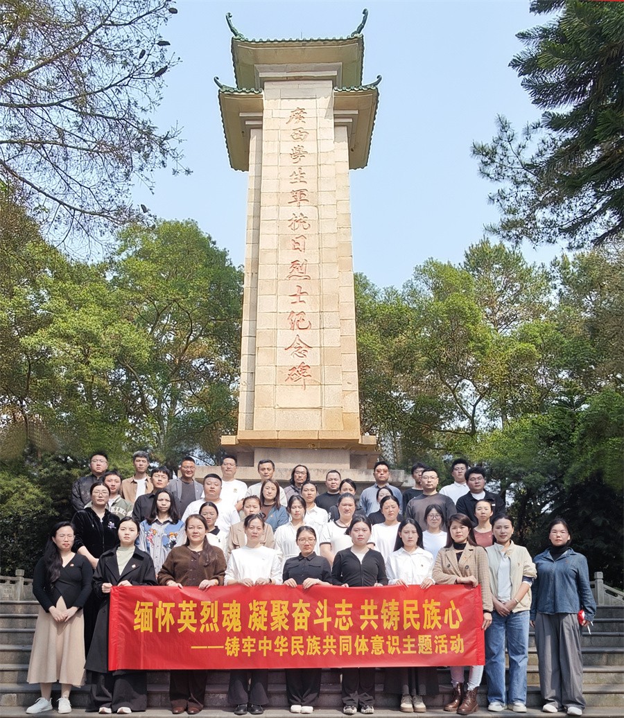 4月3日,在中华民族传统节日清明节到来之际,北海艺术设计学院机关第一党支部、机关第二党支部、教育学院党支部、舞蹈学院党支部、动画与传媒学院学生第一党支部前往南宁联合开展“缅怀英烈魂 凝聚奋斗志 共铸民族心”——铸牢中华民族共同体意识主题活动。学校40余名党员参加了活动。