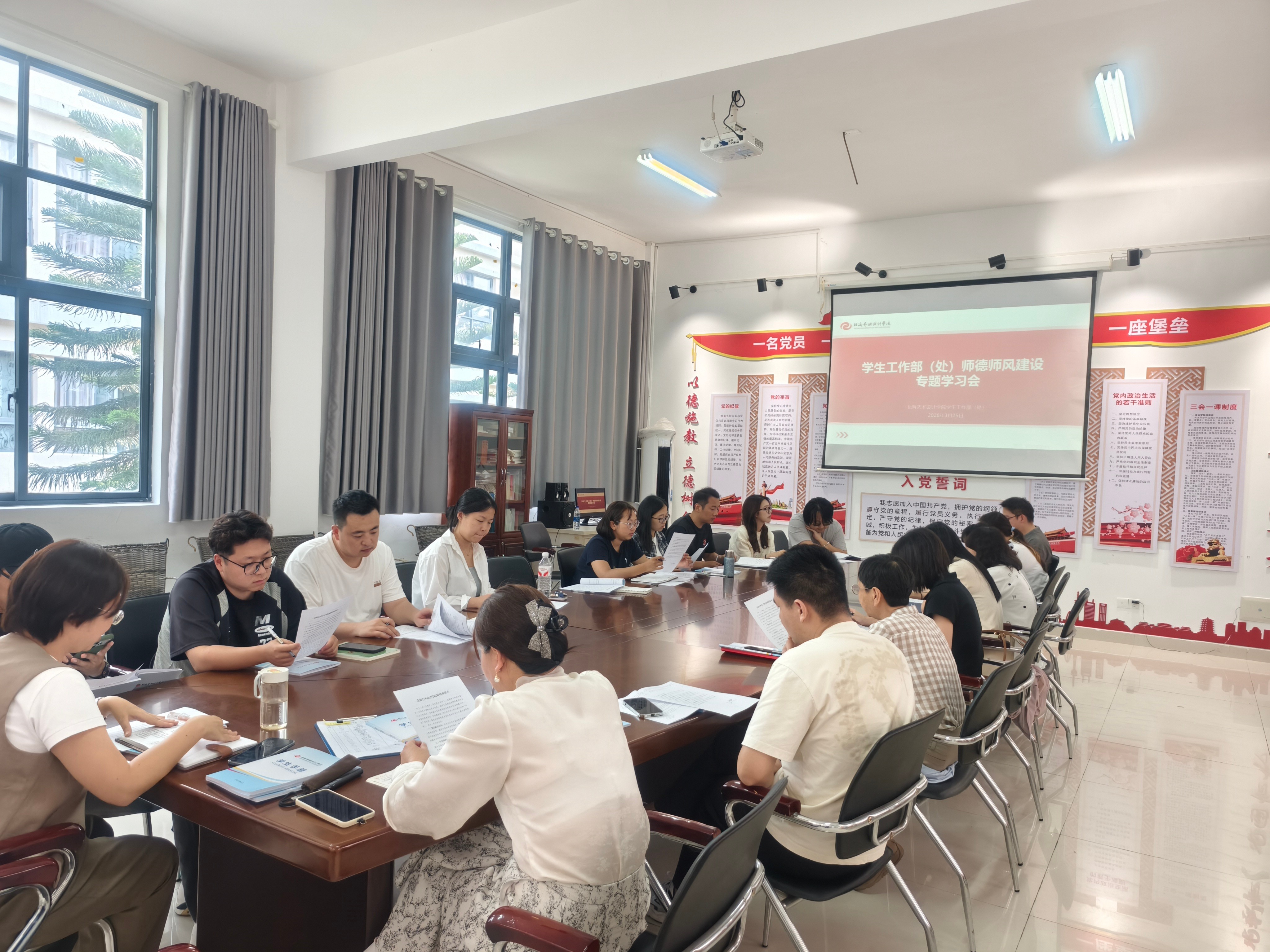 为进一步加强师德师风建设,提升教师职业道德素养,3月25日下午,学生工作部(处)在西校区学工楼204会议室召开师德师风建设专题学习会。部门全体教职工参加会议。