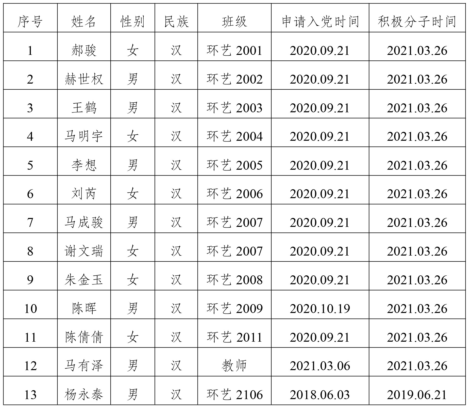关于拟将郝骏等13位同志列为发展对象人选的公示