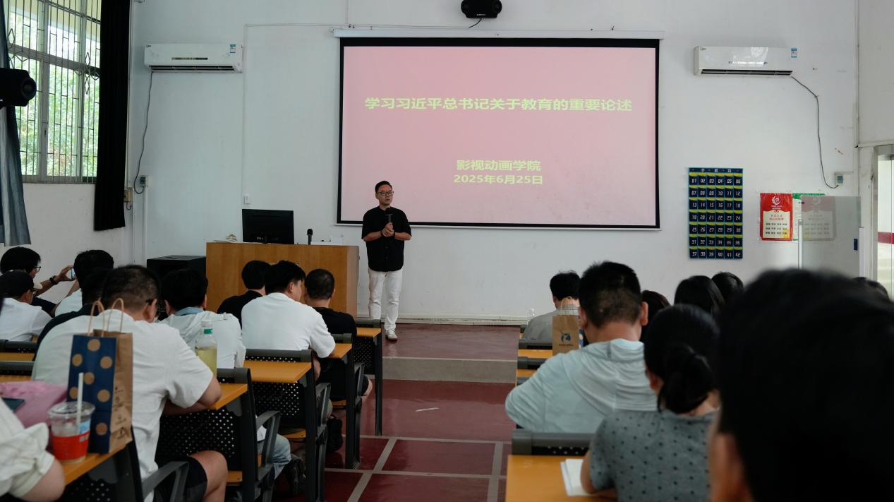 在影视动画学院调整重组伊始,通过此次专题学习,学院凝聚共识、锚定方向,在今后的工作中,要坚持以习近平新时代中国特色社会主义思想为指导,以贯彻《教育强国建设规划纲要(2024—2035年)》为战略支点,聚焦培养拔尖人才、优化教育体系,主动融入教育现代化战略布局,奋力谱写教育强院新篇章。