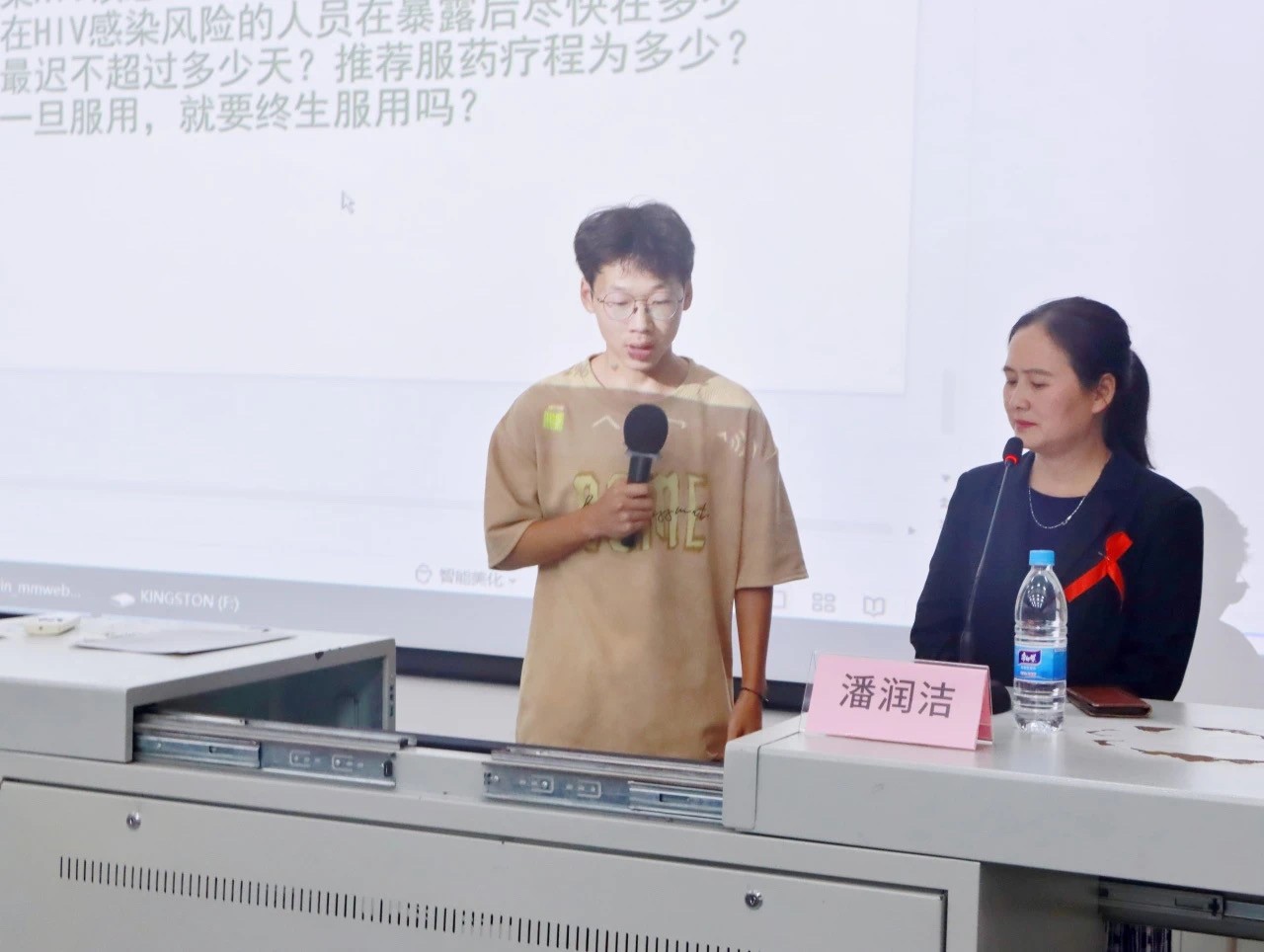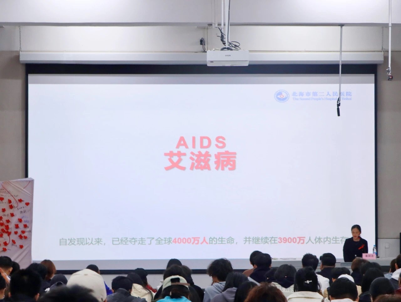 为进一步加大防艾宣传力度,提升我校师生对艾滋病的认识和防护,2024年11月29日,我校于西区公德楼107开展“青春有爱·健康无艾”的性与生殖健康、女性生理健康、防艾禁毒主题讲座。为此特邀北海市科学传播医疗卫生专家,北海市第二人民医院的潘润洁老师围绕主题“社会共治,终结艾滋,共享健康”探讨艾滋病相关知识与防治要点。