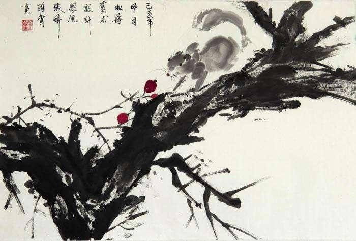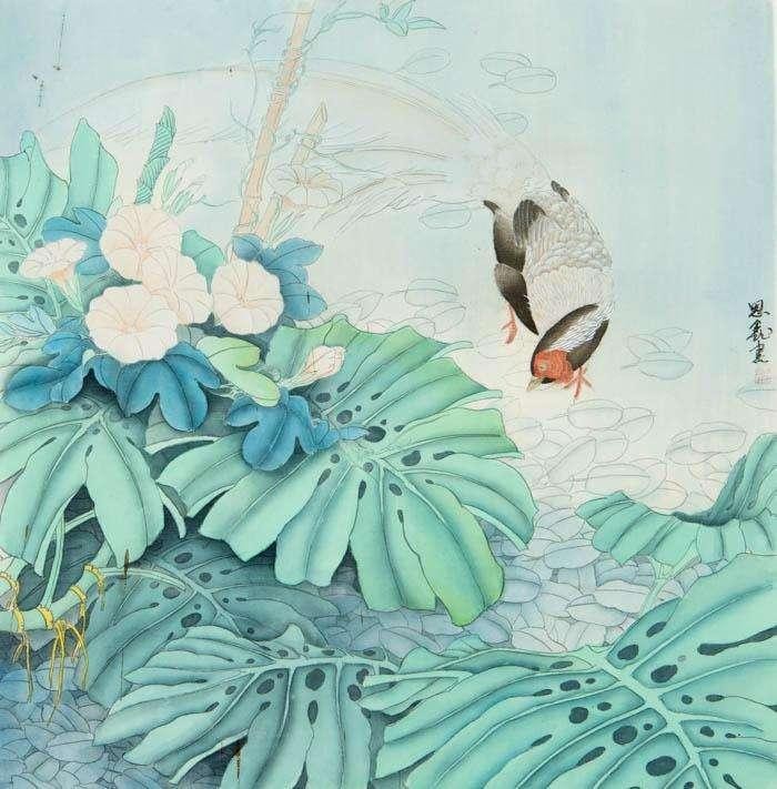 伊能英《临秋树鸲鹘图》35×35cm 指导老师:陈建江