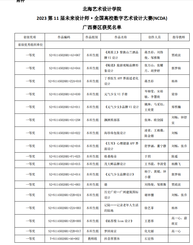 喜报 / 我院师生在2023第11届未来设计师·全国高校数字艺术设计大赛(NCDA)广西赛区中喜获佳绩!