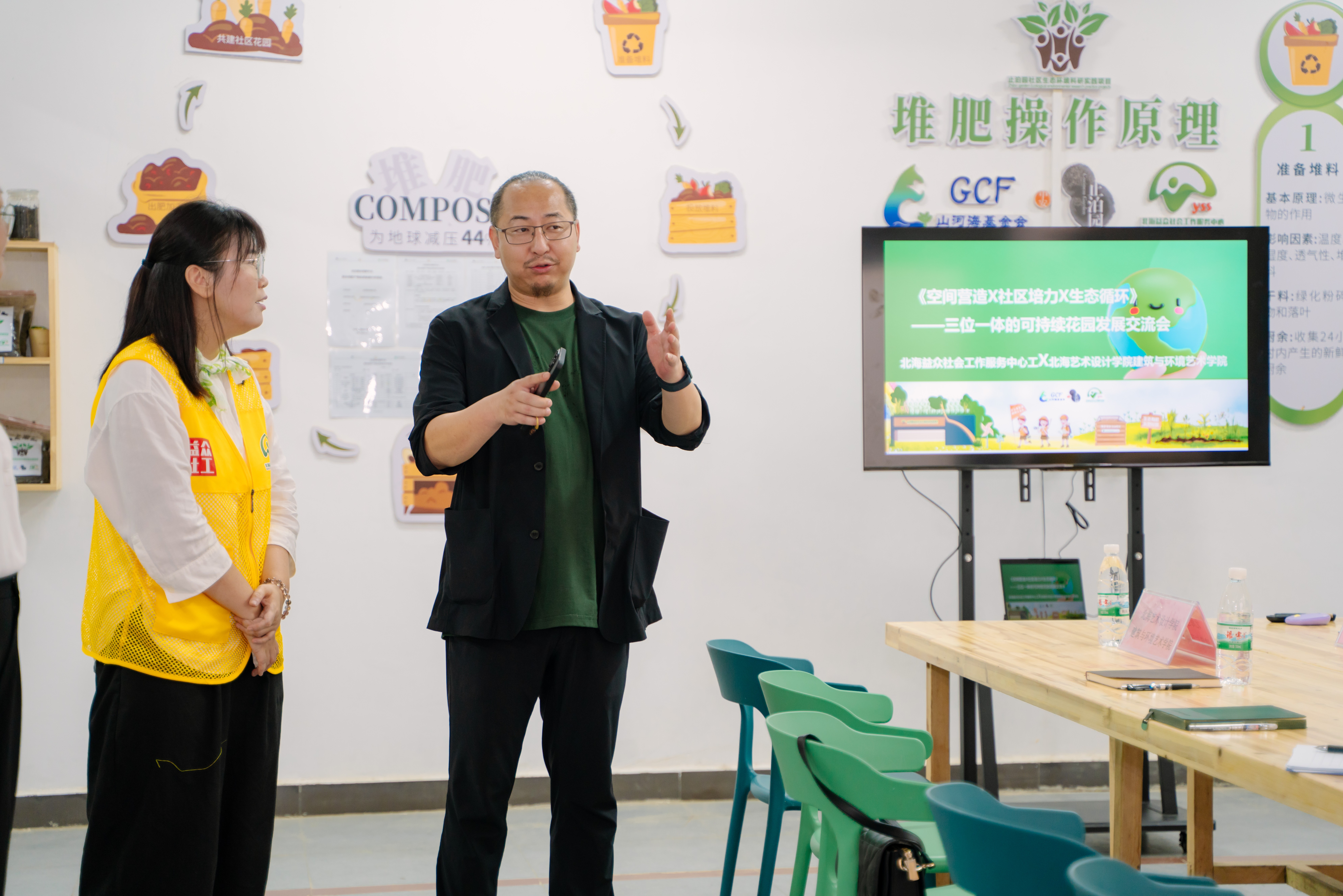 社区项目负责人黄光燕向张院长等讲解堆肥示范点