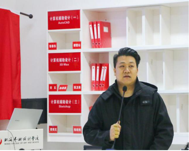 首先由我院黄圣鑫老师为本次活动致辞:今天晚上的活动是一个非常难得的机会,今晚的主角南宁A8北海分公司设计总监周洁松,他将会给我们带来一场非常精彩的主题分享。最初做餐饮行业的周总监,对这一领域有着丰富的经验,现在的他转战商业设计这一重要领域。 黄老师表示:今晚无论是南宁A8也好还是在座的其余公司,都是对北海具有影响力的公司。希望各位师生有机会可以到各位导师公司进行深度交流学习。