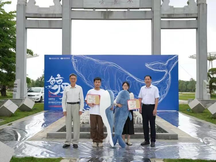 为丰富校园文化生活,深入推进校园精神文明建设,提升学生的艺术素养和创新能力,为师生搭建一个跨专业交流学习、展示才华的平台,5月29日下午,动画与传媒学院首届“鲸界”动画&数媒作品艺术联展在北海园博园北海园举行。学校董事长郑念贻,党委书记覃宪儒,校长卢新华,党委副书记陈毅华,副校长邱杰、包建明,总督学王斌等领导出席活动。教育部高等学校动画、数字媒体艺术专业教学指导委员会秘书长、全国高等院校计算机基础教育研究会会长、动画与传媒学院名誉院长、博士生导师黄心渊教授,苏州大学纺织与服装工程学院院长张克勤教授,香港高等商学院院长吴波教授,桂林电子科技大学设计与创意学院院长葛俊杰教授,同济大学创新创业学院副院长孙捷教授,苏州大学纺织与服装工程学院硕博导师洪岩教授,南宁市峰值文化传播有限公司总经理蒋林峰,北海广播电视台书记高峰,北海市电子信息行业协会会长夏岭,北海华彩影视文化传媒有限公司总经理陈丛越,北海市向海金融城招商总监梁张云等多位业内知名专家学者及动画与传媒学院500余名师生共同见证这一艺术盛宴。