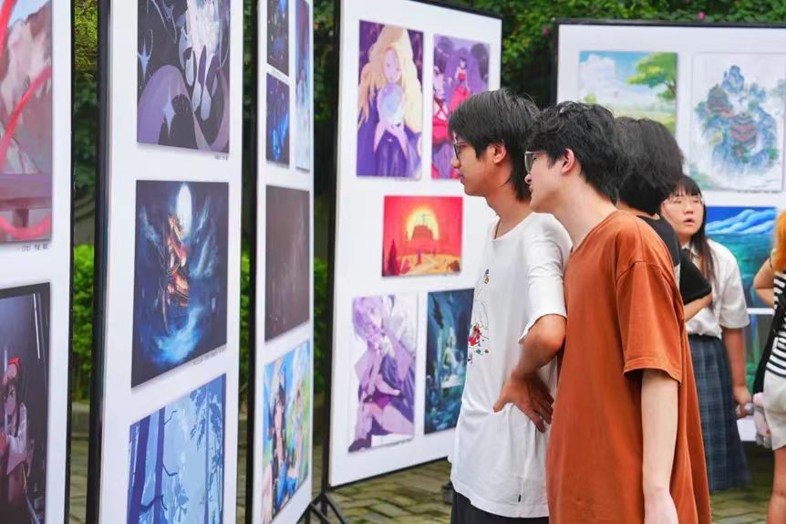 活动由动画与传媒学院名誉院长黄心渊教授宣布开幕。随后,领导嘉宾与在场师生共同参观作品展览区,欣赏富有创意和内涵的艺术作品。师生们积极交流互动,打卡拍照,现场活跃的气氛也让大家对未来的艺术发展充满了期待。