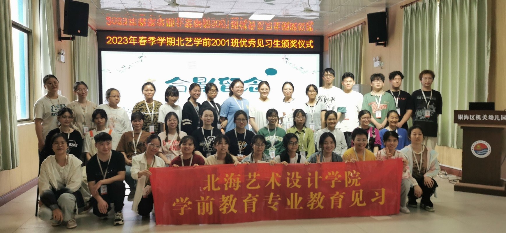 为加强学前教育大三学生综合实践运用能力,人文教育学院学前教育专业于2023年4月17日至28日组织2001、2002、2003班的全体同学分别到银海区机关幼儿园、银海区第二幼儿园、海城区第一幼儿园进行为期两周的教育见习。