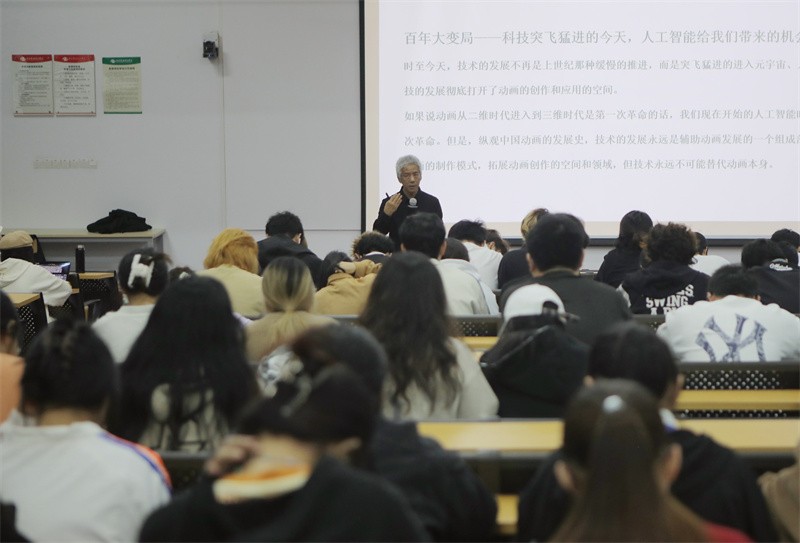 11月15日晚,动画与传媒学院特聘教授黄惠忠教授于我校西区伦理楼107教室,为广大师生带来了一场题为《百年大变局下中国动画的挑战与机遇》的精彩讲座。
