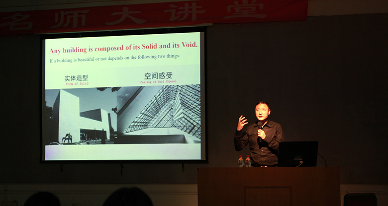 2014年11月10日晚7:30在1号楼多媒体2教室,中央美术学院建筑学院副院长常志刚教授做客我院“名师大讲堂”,为我院师生带来了一场关于“建筑的审美及发展趋势”的专业讲座。常志刚教授为清华大学建筑工学博士,中央美术学院建筑学院硕士生导师,多次主持国家级科研项目,在媒体建筑方面有较深入的研究。