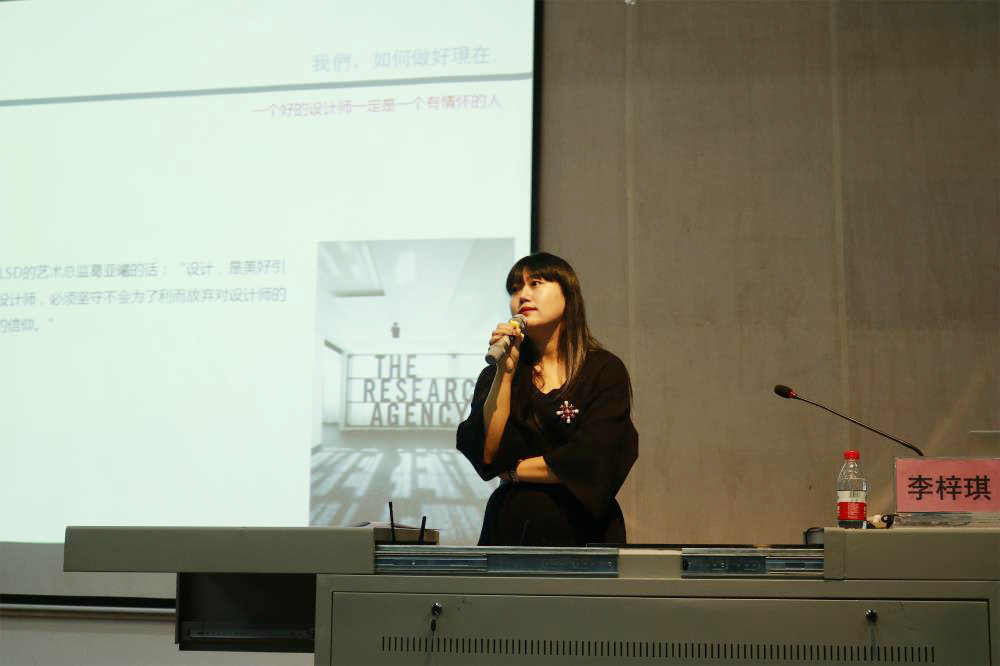 讲座接近尾声时,李梓琪教授还不忘为同学们强调“什么才是设计”——你的气质里藏着你走过的路,读过的书,爱过的人。其实设计也是一样的,你读过的书,听过的音乐,经历的事情,爱过的人,最后组成了你的审美观,你的价值观,他们植入你的血液,最后体现在你的作品当中。随后,李梓琪教授还在讲座中耐心解答了同学们的提问。