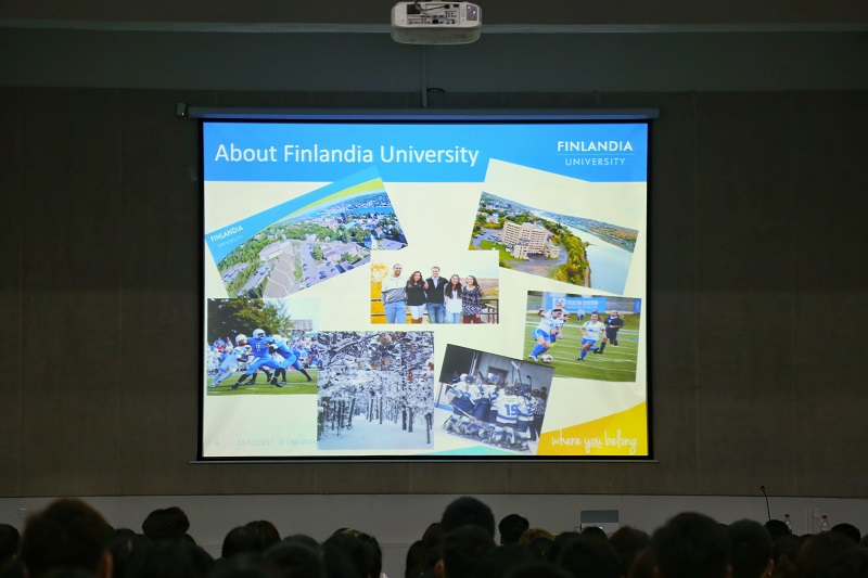 交流中,Richard Lynn Gee教授通过照片给同学们详细介绍了芬兰迪亚大学建校的初期历史、校园地理位置和天气状况等,并通过视频向师生们展示了芬兰迪亚大学的校园环境和校园生活,使同学们更直观地了解芬兰迪亚大学。