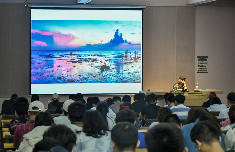 讲座过程中,蓝建强老师通过实例讲解人体艺术拍摄,他表示,画家是用画笔来进行画画,摄影则是用光来画画,再次强调布光在摄影过程中的重要性。又通过两部展现广西美好风景的微电影,建议摄影专业的学生有机会多出去采风,进一步提高个人审美和专业素养。