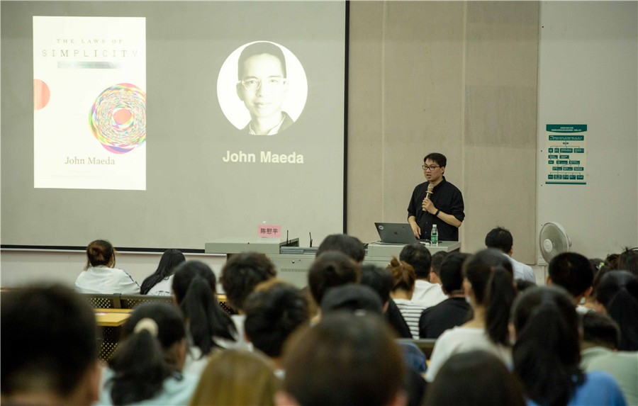 讲座最后,陈教授提到了国内外设计环境的区别,十年前中国网络并不发达,国内很多设计师很少看到国际上的作品,但随着经济水平发展和网络的普及便捷,设计师们可以更快了解国内外动态,国内外设计的区别逐渐减小,国内设计环境越来越好,有利于国内设计行业的发展,希望同学们具备更广阔的视野,打好基础,创造出更多的优秀作品。