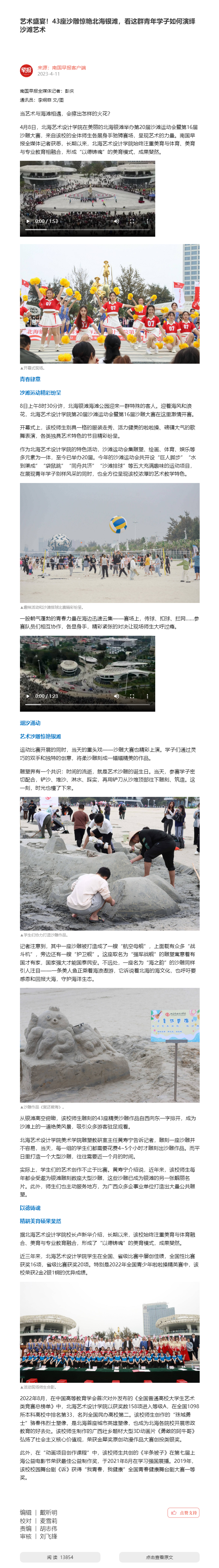 人民网:北海银滩沙雕比赛暨北海艺术设计学院沙滩运动会开幕