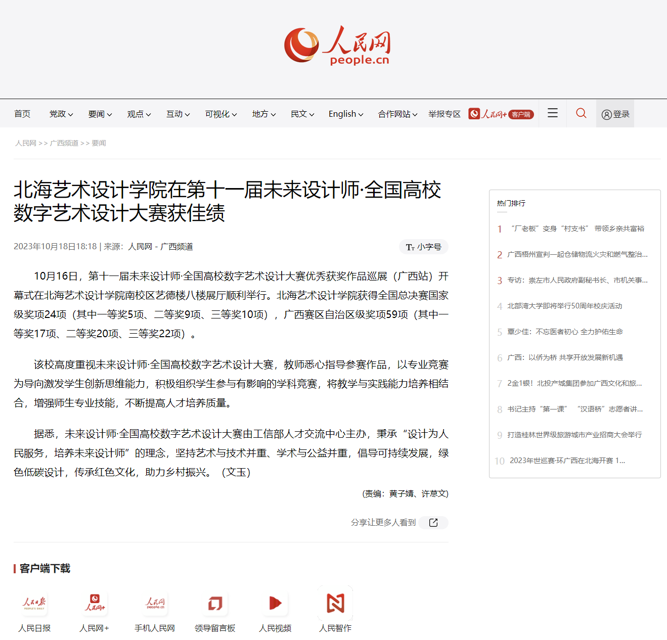 人民网:北海艺术设计学院在第十一届未来设计师·全国高校数字艺术设计大赛获佳绩