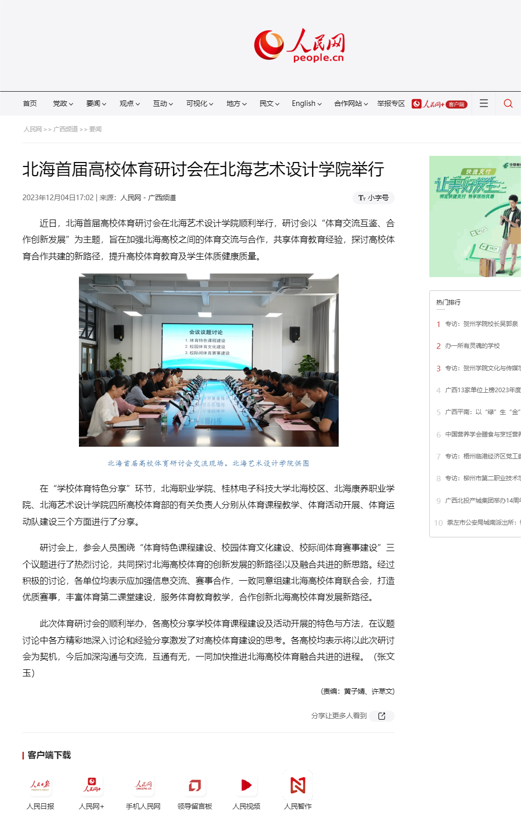 人民网:北海首届高校体育研讨会在北海艺术设计学院举行