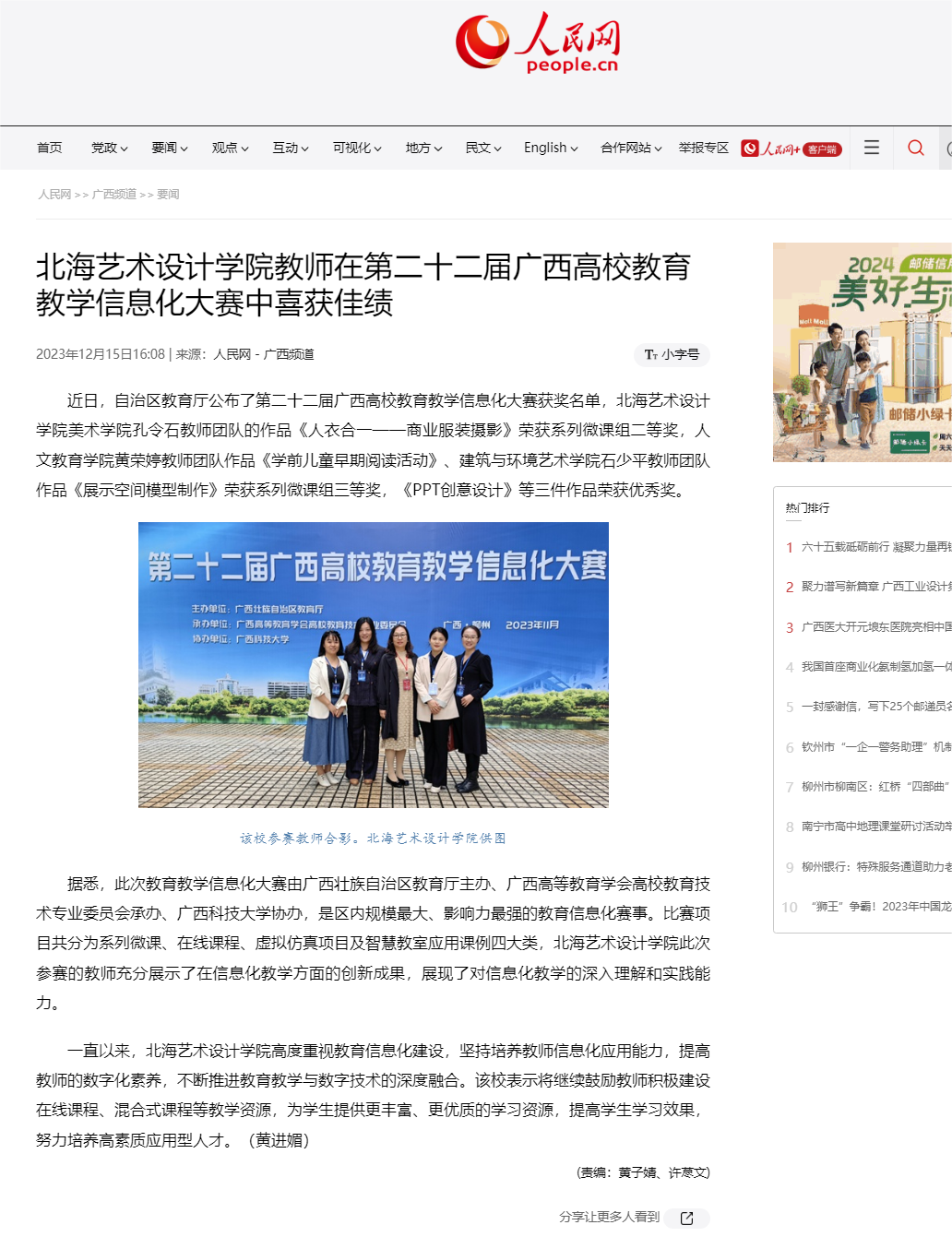 人民网:北海艺术设计学院教师在第二十二届广西高校教育教学信息化大赛中喜获佳绩