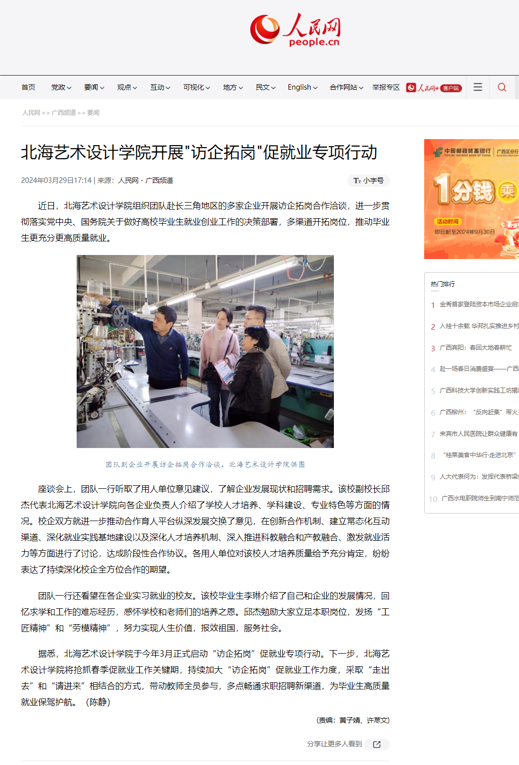 人民网:北海艺术设计学院开展"访企拓岗"促就业专项行动