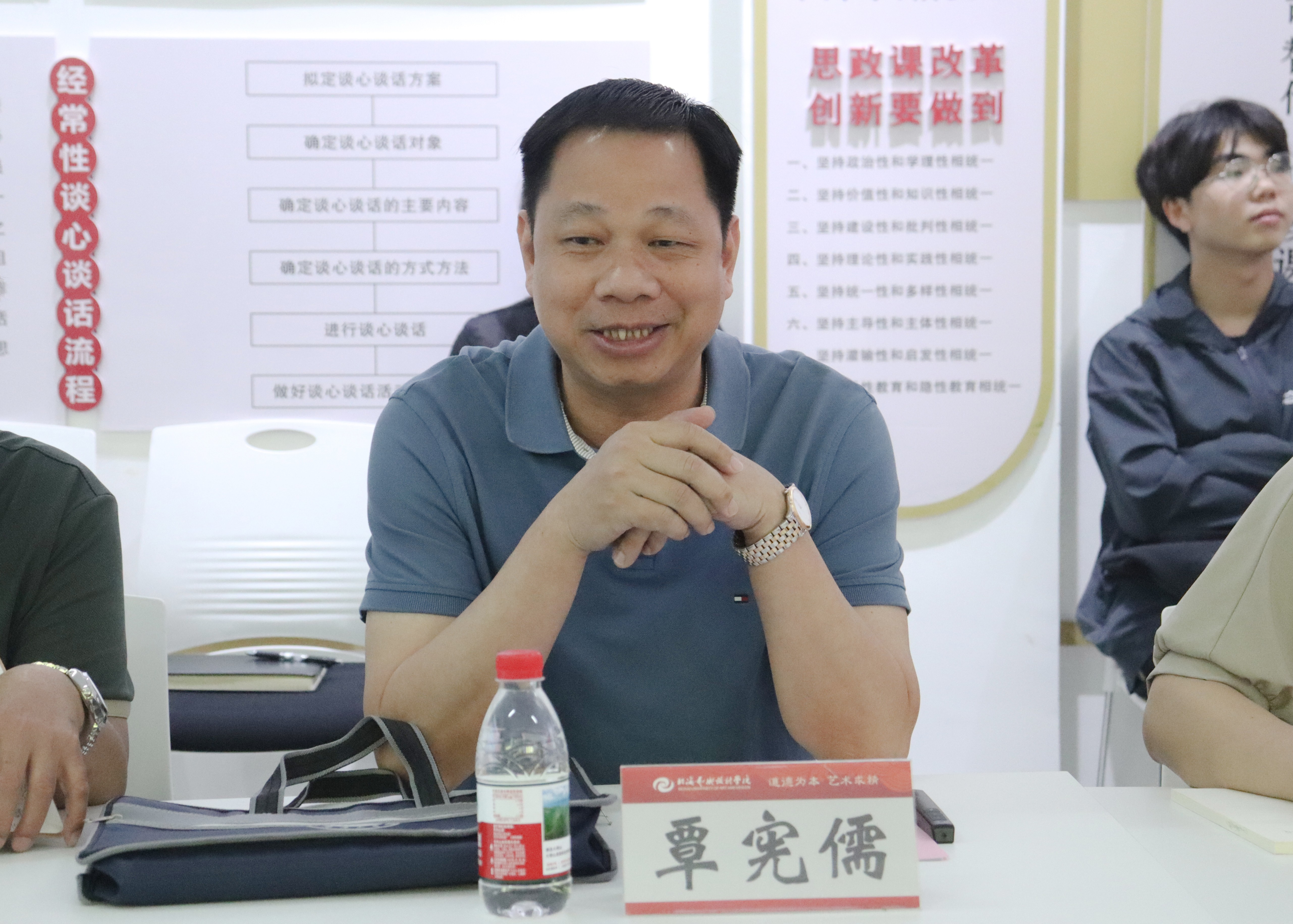 首先,学校党委书记覃宪儒对广西大学马克思主义学院领导老师的到来表示热烈欢迎,并回顾了与广西大学的历史渊源。紧接着,他从坚守教育情怀、服务西部边疆,坚定党的领导、立德树人为本,明确发展理念、强化四个坚持,双城育人特色、促进三个融合,服务地方发展、强化四个助力等方面详细地介绍了学校的基本情况,全方位地向大家展示了我校作为民办艺术设计类本科高校的特色、亮点做法。