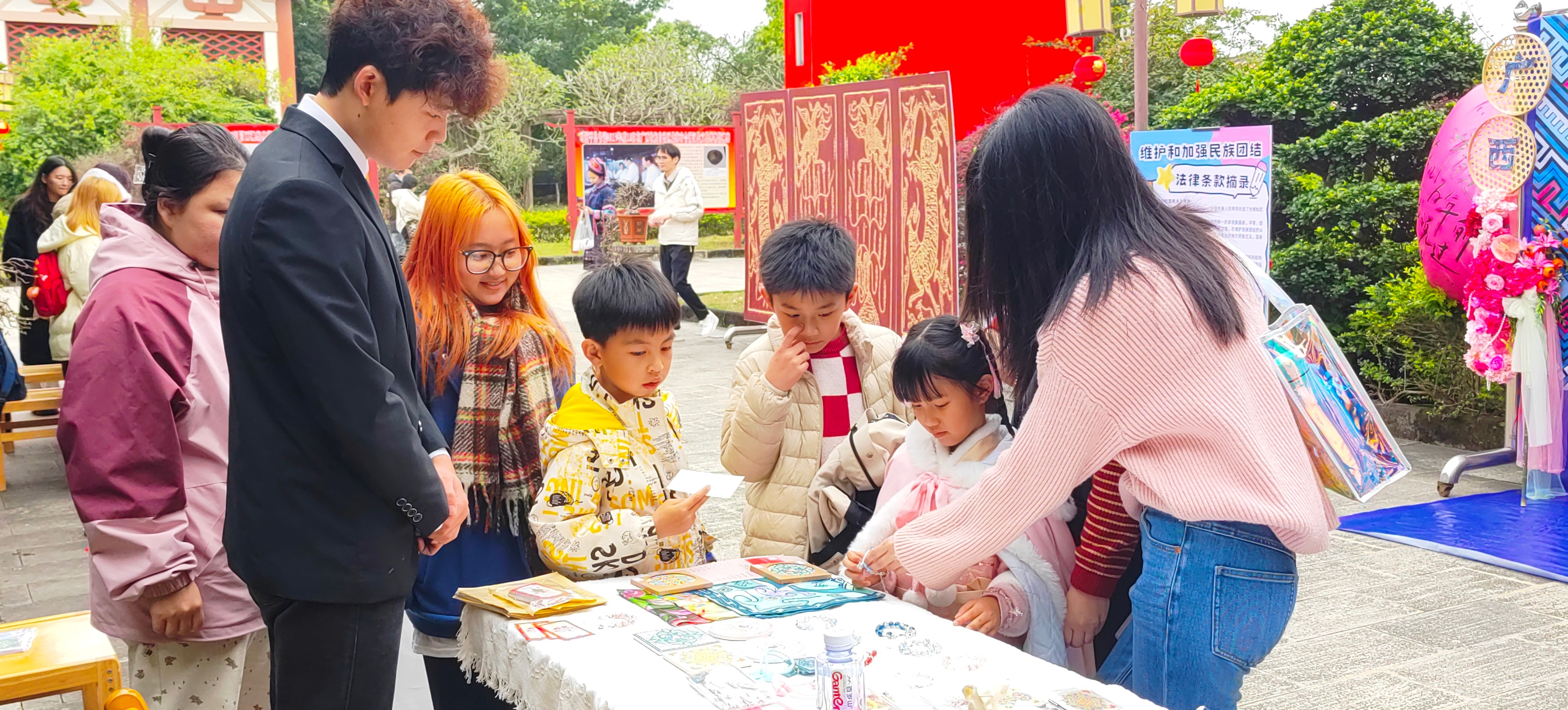 “三月三”设计共创体验区则带来了科技与文化的创新融合。同学们运用AIGC技术为游客提供少数民族服饰“数字换装”体验,让参与者通过现代科技秒变壮乡儿女,沉浸式感受民族文化魅力。