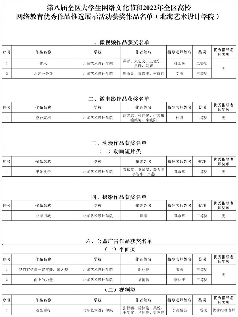 喜报|北海艺术设计学院在第八届全区大学生网络文化节和2022年全区高校网络教育优秀作品推选展示活动中喜获佳绩