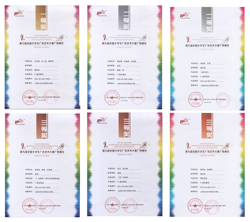 据悉,今年我校报送的学生参赛作品,有多组团队的作品从广西赛区50多所参赛的大学中脱颖而出,参与本届全国大广赛,并从30余万作品中胜出,最终斩获本届全国大广赛全国三等奖1项和全国优秀奖9项。同时,还获得大广赛广西赛区一等奖1项、二等奖2项、三等奖3项、优秀奖47项的优秀成绩。为我校赢得了良好的社会声誉和影响。