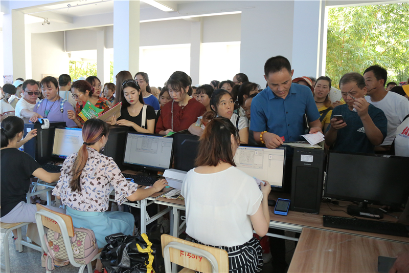 新生报道期间,每一位老师都兢兢业业的坚守在自己的工作岗位,在东西两个校区的每一个服务站点引导学生进行有序的缴费,认真完成自己的工作。新生接待流量巨大,面对众多新生老师都有条不紊的为新生进行报道接待工作,并耐心的为新生处理报道问题,引导新生进入下一个服务点领取相关开学必需用品。
