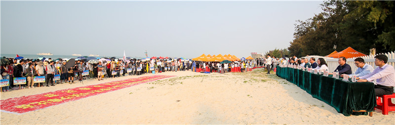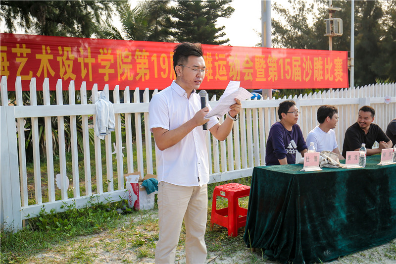 清晨的银滩,海风徐徐,万众瞩目的第十九届沙滩运动暨第十五届沙雕比赛,于2019年4月19号在美丽的北海银滩举行,8点30分开幕式正式开始。开幕式由我校副校长邱杰主持,党委副书记、副校长彭仁致开幕辞,党委书记李高南宣布运动会正式开幕。我校副校长张建虹、张跃、胡胜、王斌及二级学院领导等出席了开幕式。