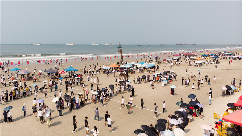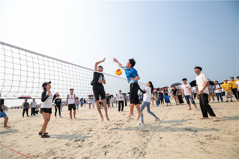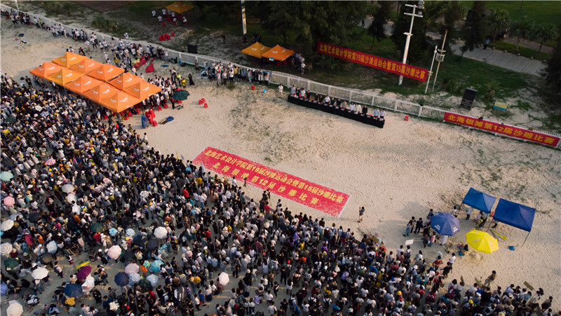 赛场上选手努力拼搏,场外同学积极摇旗呐喊,为各自班级的荣誉争光。整个沙滩运动场洋溢的青春活力如同天空的烈日骄阳,青春、蓬勃、骄傲。赛场每一处都穿梭着运动员傲人的身姿、昂扬的斗志。场外的欢呼声不绝于耳,回荡在银滩的空气中。