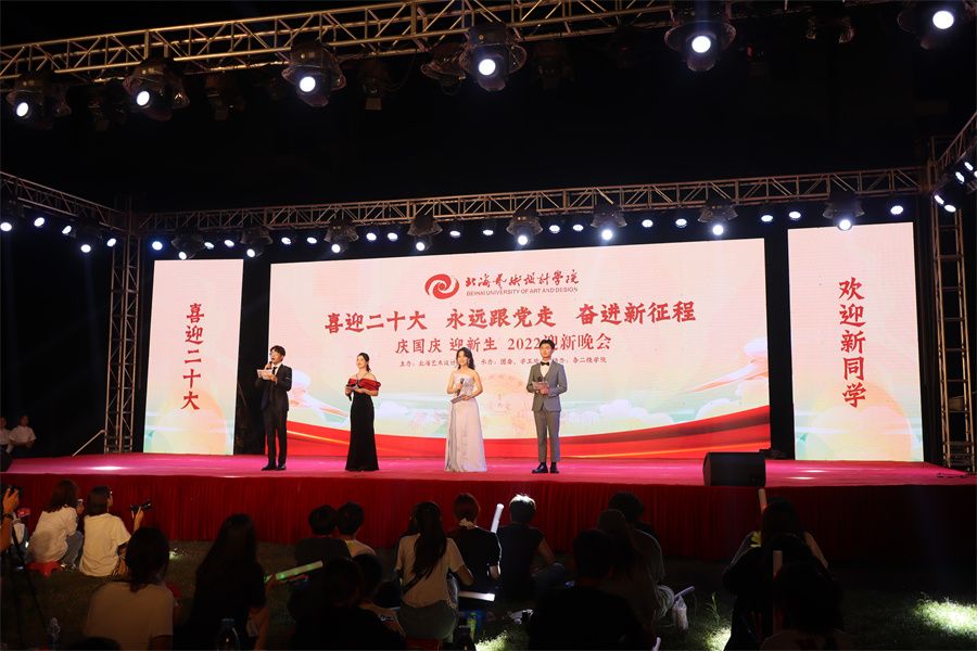 金风送爽,天朗气清。10月5日,我校于东校区操场举办“喜迎二十大 永远跟党走 奋进新征程 庆国庆 迎新生”2022年迎新晚会。伴随着飒爽的秋风,用欢歌笑舞热烈欢迎一批新的优秀学子加入北艺大家庭。校领导胡胜、王斌、陶立阳、刘朝雄及部分二级学院领导出席晚会,与全校师生欢聚一堂。