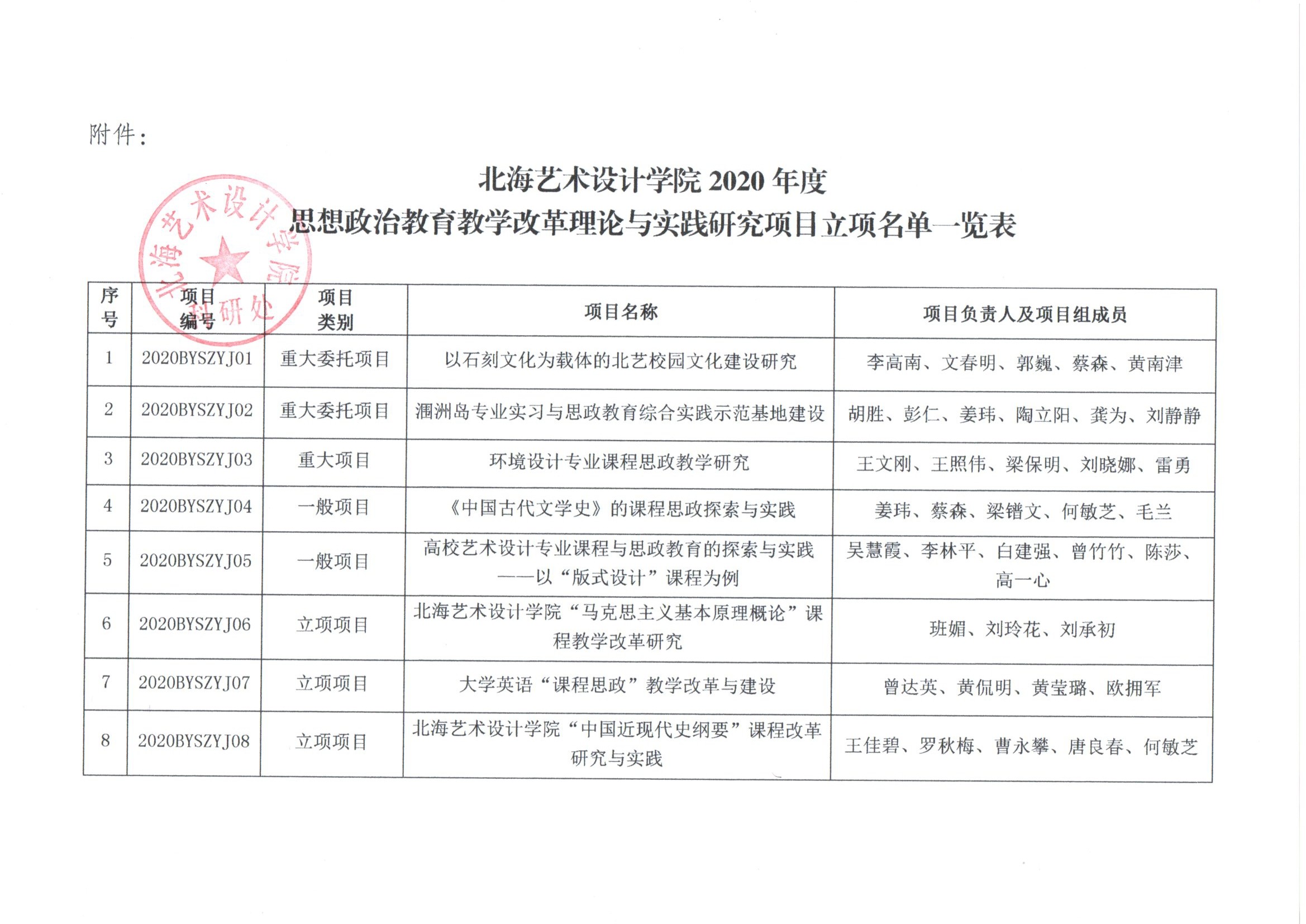 北海艺术设计学院2020年度思想政治教育教学改革理论与实践研究项目立项通知