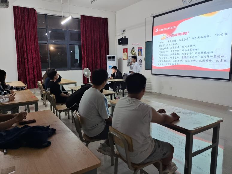 该团支部是《以青春之名•扬红色之魂》作为本次团日活动的主要核心,其意就是号召同学们把握青春时光,努力学习,迸发向上,学习和弘扬红色革命精神文化,热爱祖国,树立远大理想,为中华民族伟大复兴做贡献,做好新时代的传承者和建设者。活动正式开始前,奏响了《歌唱祖国》《没有共产党就没有新中国》《记住你》《我们都是追梦人》等MV作为活动的开场,是为了更好地突出本次活动的主题,为了活动正式开始前同学更加深入学习和了解红色革命文化精神,如何说好新时代的建设者和弘扬者做好了铺垫。本次活动设置了各种环节中,例如红色文化知识竞答,增加活动的互动性,同时也增加同学们对红色文化知识的了解。以观看长津湖宣传视频,了解抗美援朝精神和保家卫国精神,让同学们了解到我们今天到生活来之不易。还观看广西《红色传奇》记录片,了解广西的强大红色革命文化精神,了解这块土地的英雄形象。最后,由全班朗诵红色文化和讲好红色文化故事相结合的原则,很好的让同学参与其中来。
