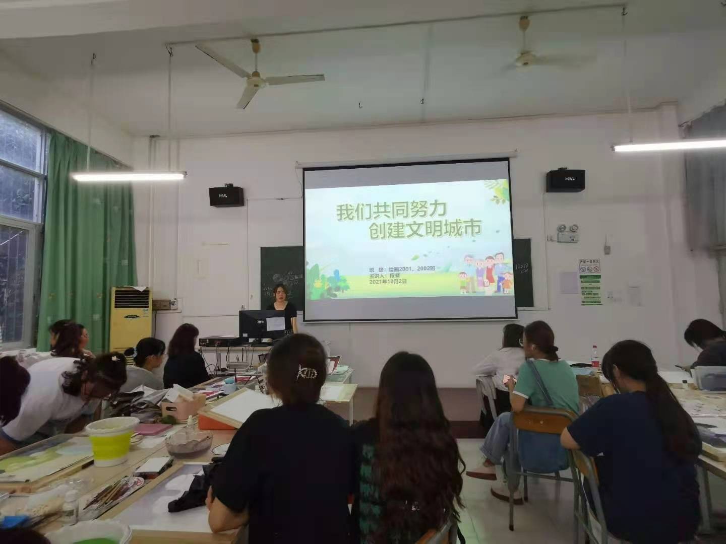 美术学院为进一步开展对学生关于对“创建文明城市”的认识,2021年10月2日展开“你我共同创建文明城市”主题班会。