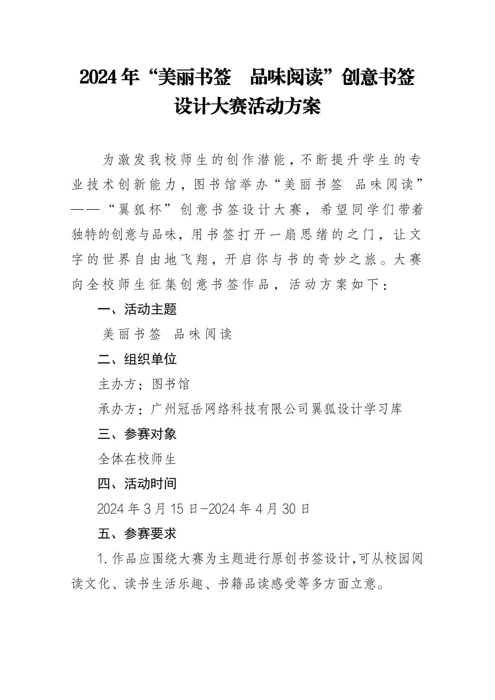 2024年“美丽书签 品味阅读”创意书签设计大赛活动方案