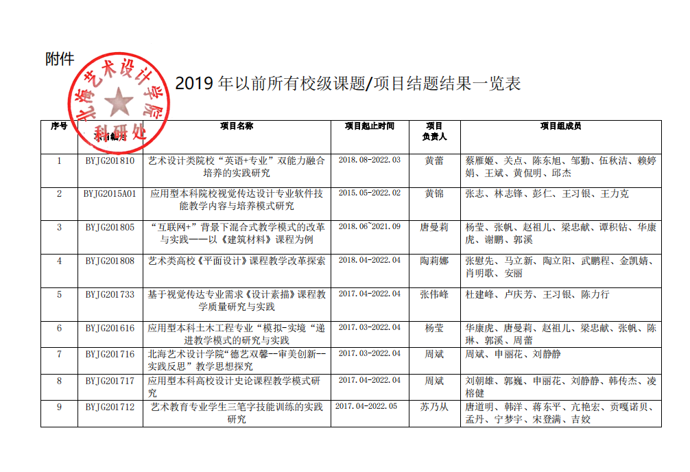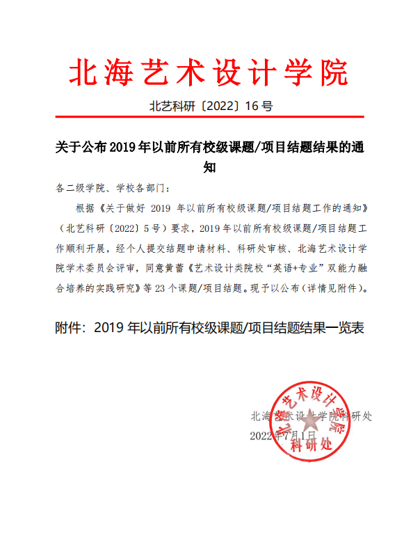 关于公布 2019 年以前所有校级课题/项目结题结果的通知