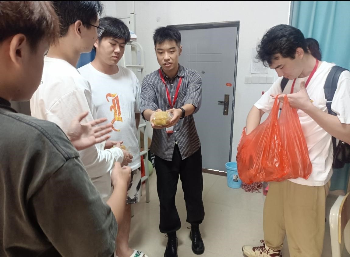 喜迎中秋,共庆佳节。为贯彻落实社会主义核心价值观继承和发扬中国传统文化,提高学生们对传统文化的认同感,9月27日,北海艺术设计学院第五党总支副书记鲁明阳同美术学院学工办主任林昌华、副主任喻广林、副主任张洁妮、副主任李家琪、分团委副书记许荣军、教师孙秀珍及11位新生班级辅导员给同学送上了北海艺术学院的真切的祝福,用月饼传递老师对同学们的浓浓情谊。