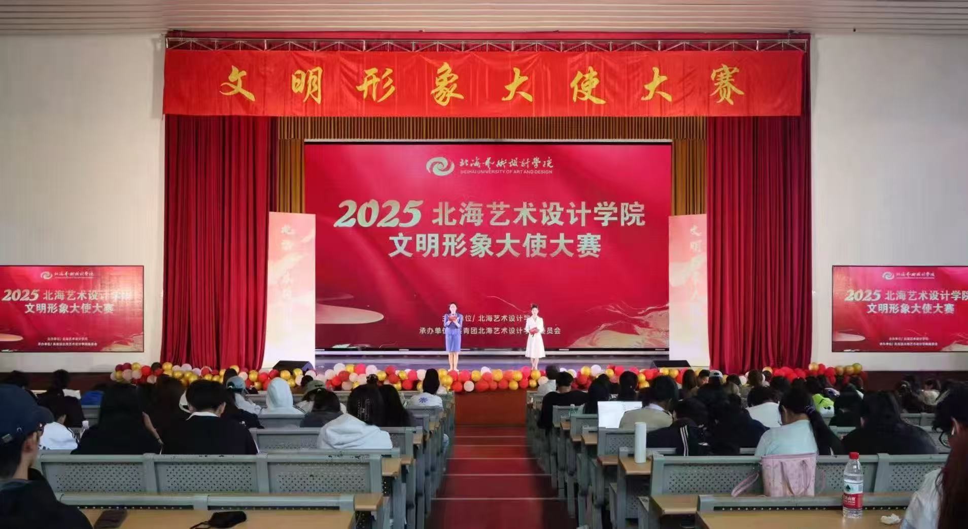 为凝聚文明力量、树立青春风尚,助力学校文明形象塑造与文化活力提升,我校文明形象大使大赛初赛于11月1日至11月2日在西区大礼堂顺利举办并圆满结束。出席本次活动的评委老师有广西艺术学院舞蹈学院副院长白洁,广西艺术学院党办院办、发展规划处规划科科长郑靖,北海艺术设计学院校长卢新华等十余位评审专家。