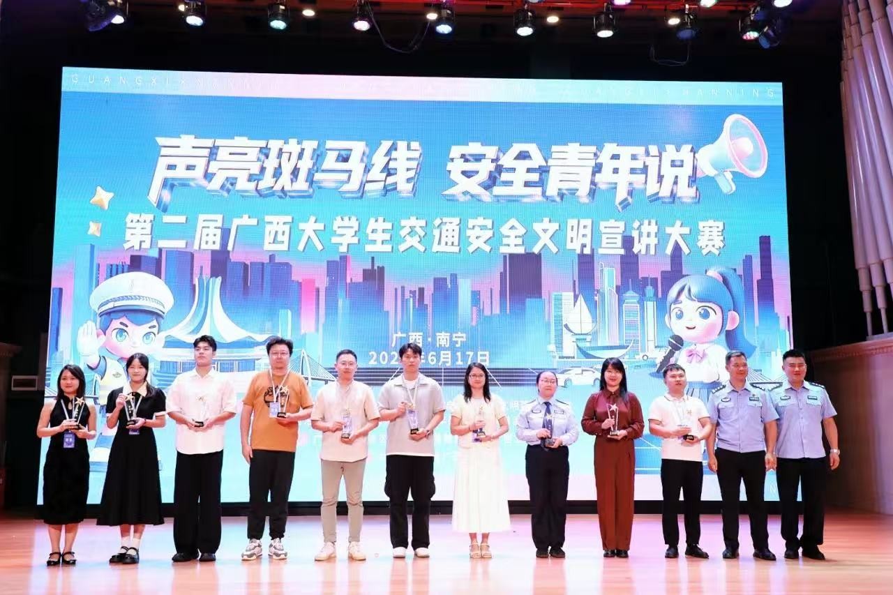 近日,由自治区公安厅、文明办、教育厅、共青团广西区委联合主办的第二届广西大学生交通安全文明宣讲大赛结果发布,我校张丽君、唐良春老师带队的参赛团队凭借出色表现荣获广西赛区一等奖,展现了学校在交通安全教育与安全宣讲领域的创新能力与教学水平。