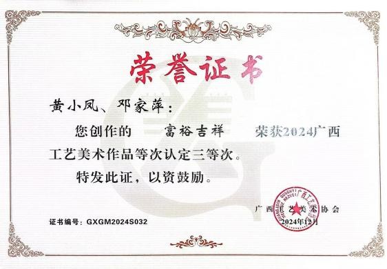 2024年作品《富裕吉祥》入选2024广西艺术作品展览优秀作品三等次