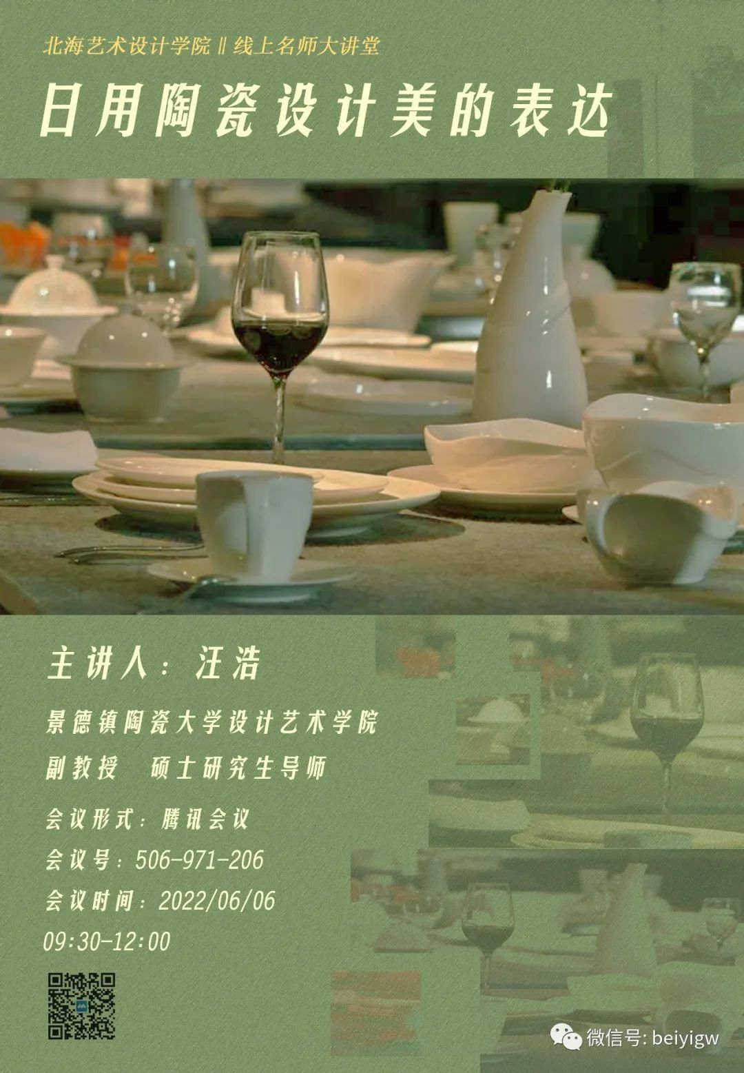 讲座预告 | 汪浩《日用陶瓷设计美的表达》