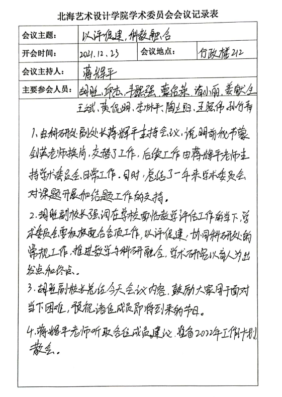 12月23日,我校学术委员会于行政楼212召开2021年学术委员会工作总结大会。校长卢新华等校领导出席会议,此次会议由学术委员会秘书蒋辉平主持。