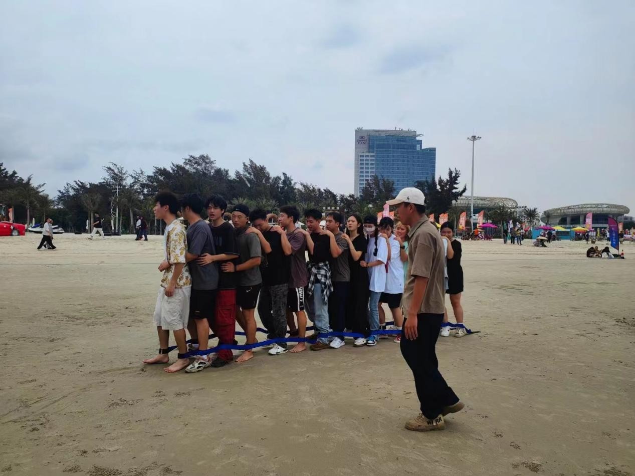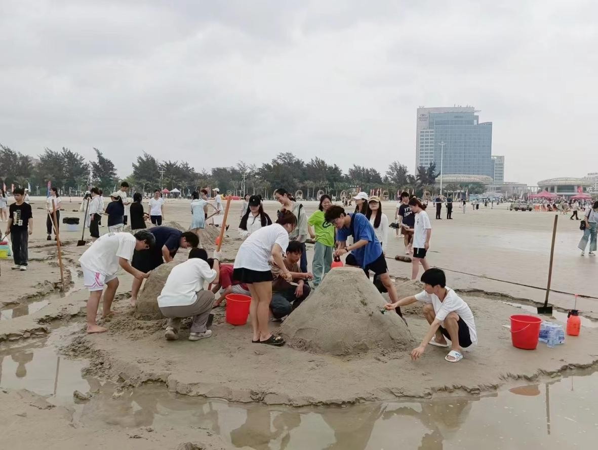 建筑与环境艺术学院学子在沙滩上尽展饱满热情与青春风采。在沙雕、沙滩排球、袋鼠跳、同舟共济、巨人脚步、水到渠成比赛项目中挥洒青春汗水,建环学院喜获第二十一届沙滩运动会团体总分第二名。(建环学院学工办/摄)