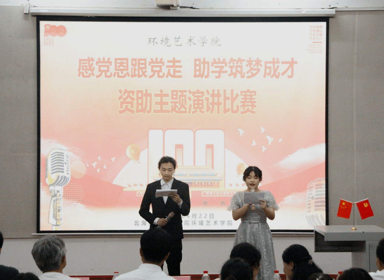 2021年4月22日19时30分,环境艺术学院“感党恩跟党走,助学筑梦成才”资助主题演讲比赛于伦理楼L-107顺利开展,出席本次赛事的领导嘉宾有:北海艺术设计学院资助中心主任、学生工作部部长、学工处副处长班媚,北海艺术设计学院心理健康教育中心主任、学工处副处长刘玲花,北海艺术设计学院校团委书记唐良春,环境艺术学院常务副院长王照伟,环境艺术学院副院长唐道明,环境艺术学院副院长蔡世伟,环境艺术学院学工办公室主任曲玥,环境艺术学院技能教研室副主任徐子茵,环境艺术学院分团委副书记雷勇,环境艺术学院辅导员马芬。