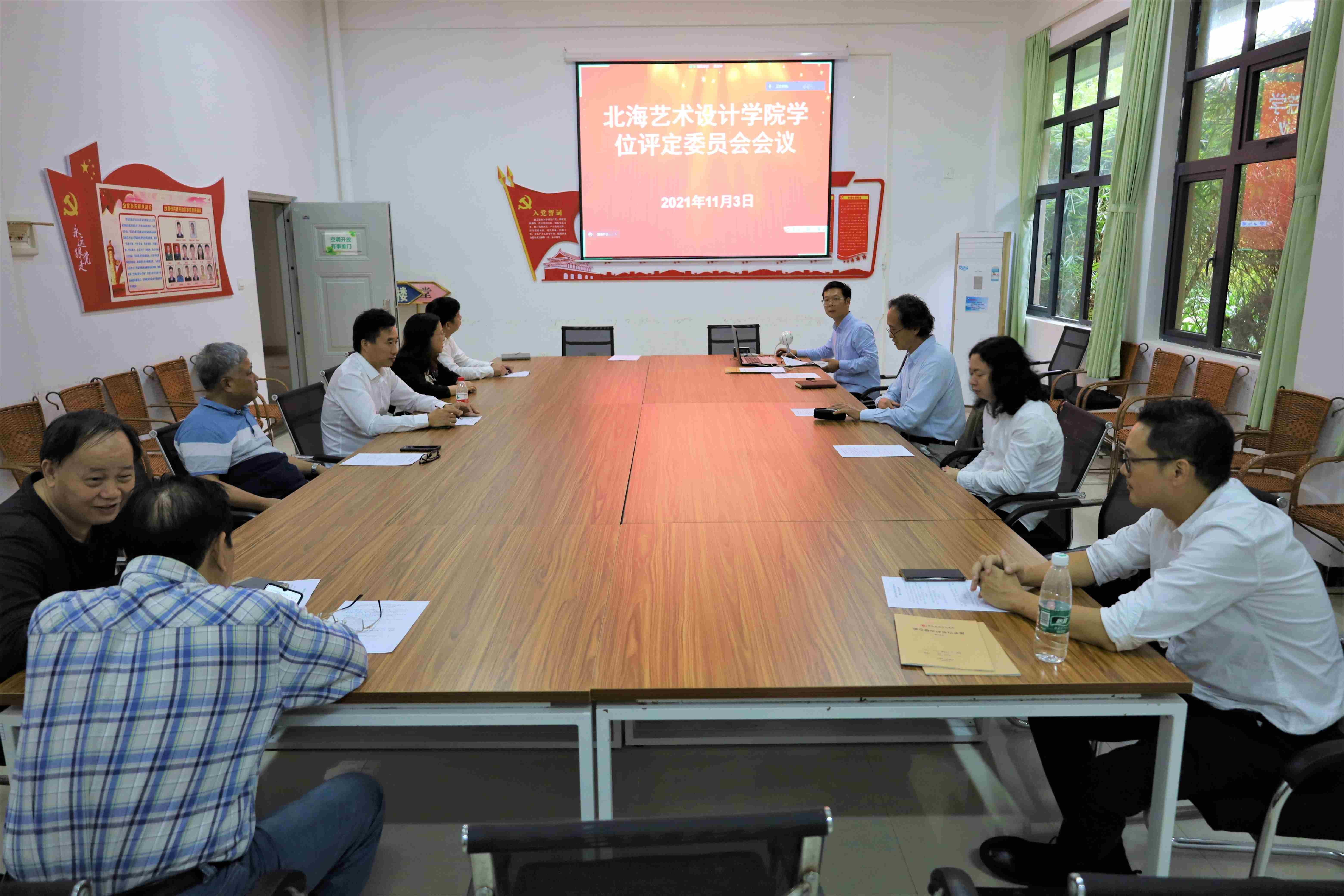 2021年11月3日下午,北海艺术设计学院学位评定委员会在行政楼111召开了专题会议。会议审议了陈昱坤等163名同学的学士学位申请事宜。